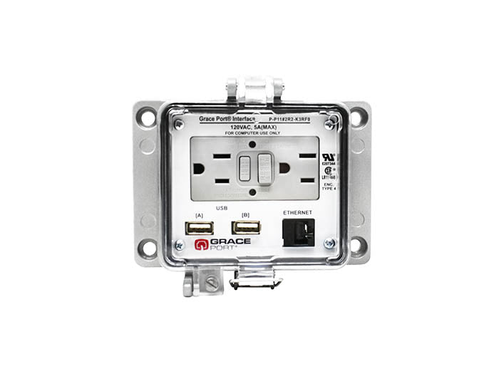 GracePorts® provide secure and convenient access to PLCs and industrial control panels. Our product range includes GFCI-protected receptacles for enhanced safety, as well as durable electrical ports and panel connectors. Explore our variety of control panel interface connectors, programming ports, and HMI covers to ensure seamless integration and protection of your systems. GracePort® products simplify PLC programming and support efficient, safe operation of your industrial equipment.
