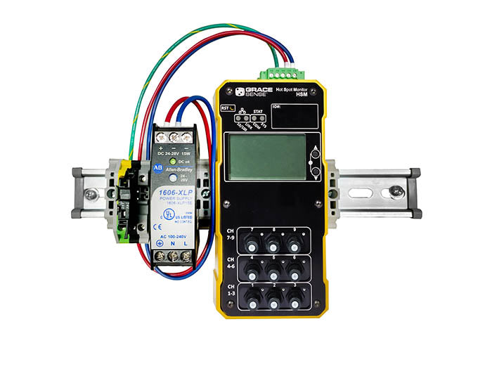 GraceSense Hot Spot Monitor (HSM) Temperature Monitoring Module with 9 monitoring points with 10 meter fibers, LCD screen display and Ethernet/IP™ with 24 VDC power module