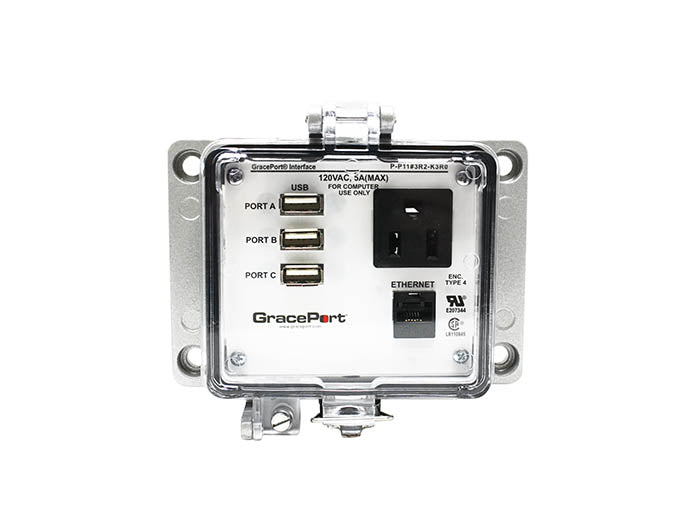 Panel Interface Connector with USB Type A/F to USB Type A/M [Qty 3]; Category 5e RJ45; Panel Mount Housing; UL Type 4X; Simplex Outlet; No Circuit Breaker
